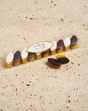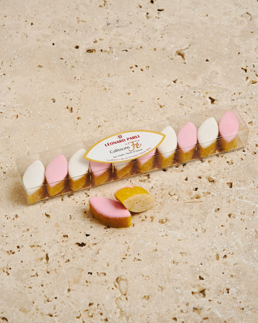 Petit frère du Calisson d'Aix-en-Provence traditionnel, le Mini Calisson de la Maison PARLI s'associe avec nos "Fé" fleuris, confectionnés à partir des mêmes ingrédients que notre Calisson d'Aix - amandes entières, melon confit et écorces d’orange confite - auxquels sont ajoutés d’autres extraits naturels.